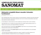 Lempäälän-Vesilahden sanomat kirjoittaa